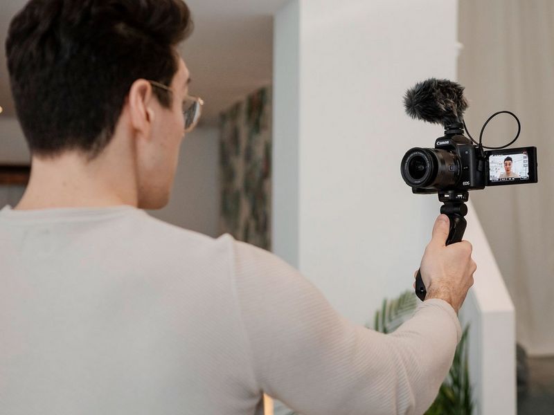 - Vlogging camera with flipscreen, ideal for content creators